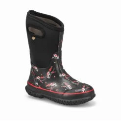 Make trips to the store in comfort, walk with confidence down a wet walkway, and stay steady in your muddy garden with the sleek and comfortable style of the Sauvie black waterproof slip on from Bogs. Durable synthetic and textile upper. Cushioned footbed with DuraFresh bio-technology that activates to fight unwanted odors. Rebound technology in the midsole for comfortable underfoot support and shock absorption.